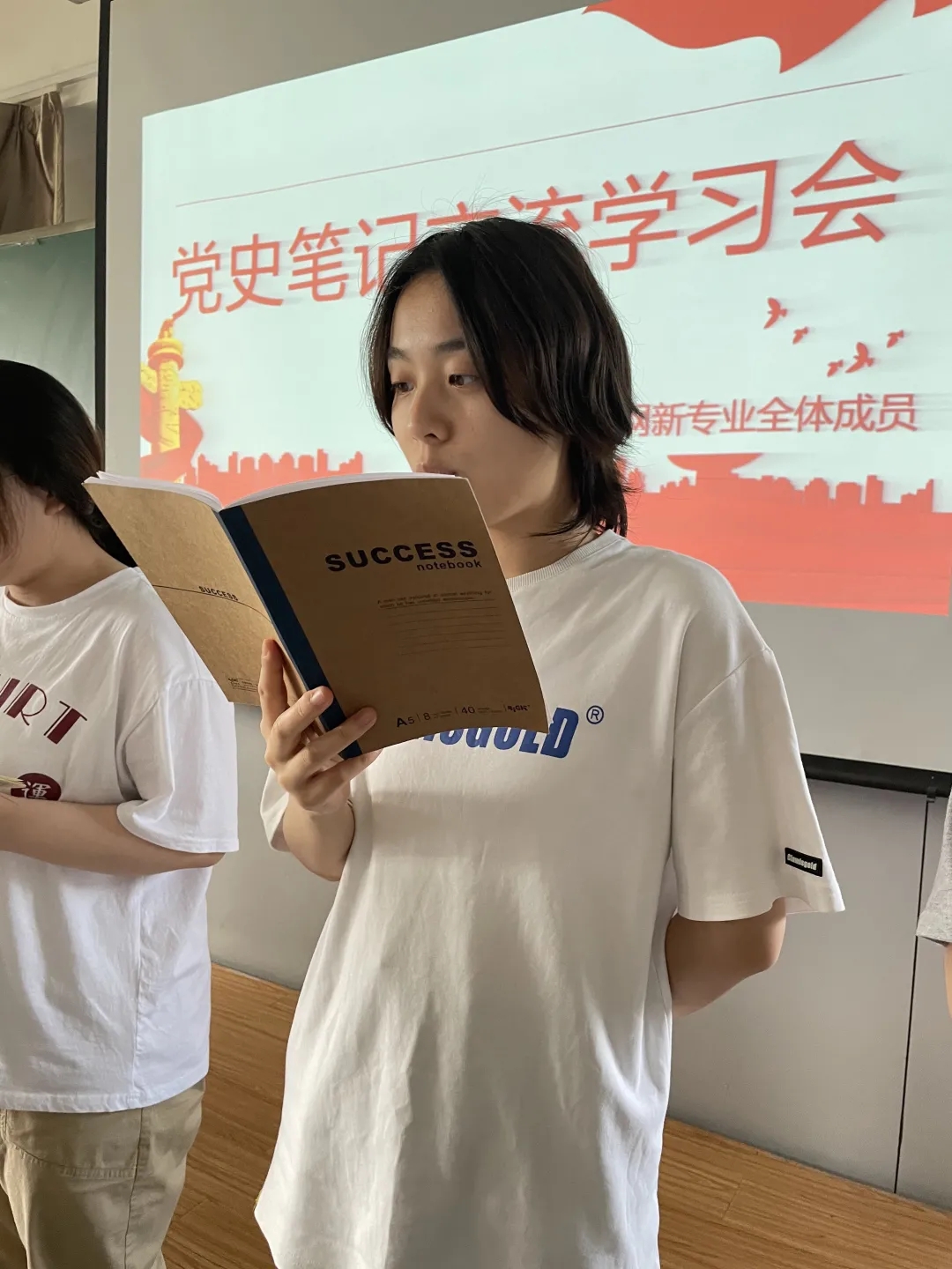 接下来,优秀的预备党员代表和学生代表,展示、诵读了他们的党史学习笔记,并且和同学们分享交流了自己关于党史学习的心得体会,通过对党史学习笔记的诵读和心得体会的交流,让在场的每一位同学都感受到了中国共产党100年来艰苦卓绝不懈奋斗的精神。