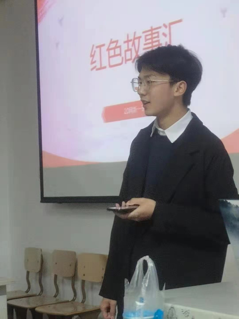 首先由团支书王浩杰同学介绍了本次班会的主题以及学习主旨,号召同学们积极上台分享红色故事并宣布本次班会的开始,本次班会共邀请4位同学从不同角度来讲述不同地区的红色故事。