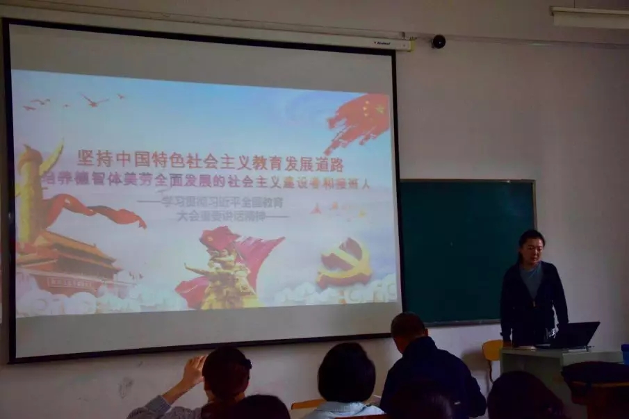 9月20日下午,学院党总支中心组举行扩大会议,传达学习全国教育大会精神。学院党总支副书记(主持工作)武福清主持会议并讲话,学生支部组织委员袁越讲授了大会精神的相关要点,学院副院长刘朝霞、总支所有在校党员教师及学生入党积极分子参加了会议。