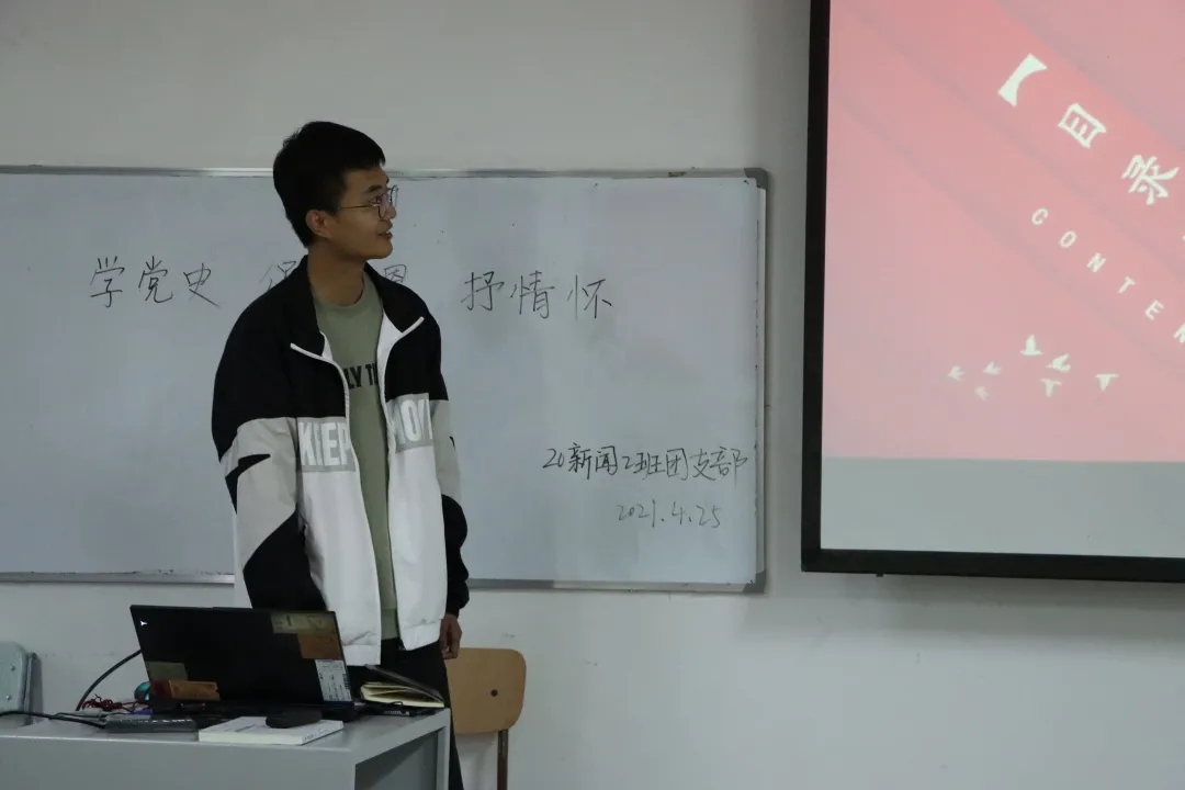 为了庆祝伟大的中国共产党成立100周年,积极响应太阳集团tyc138党总支党史学习教育的号召,2021年4月25日下午六点,20级新闻二班在四号教学楼510教室举行了以“学党史,颂党恩,抒情怀”主题班会。