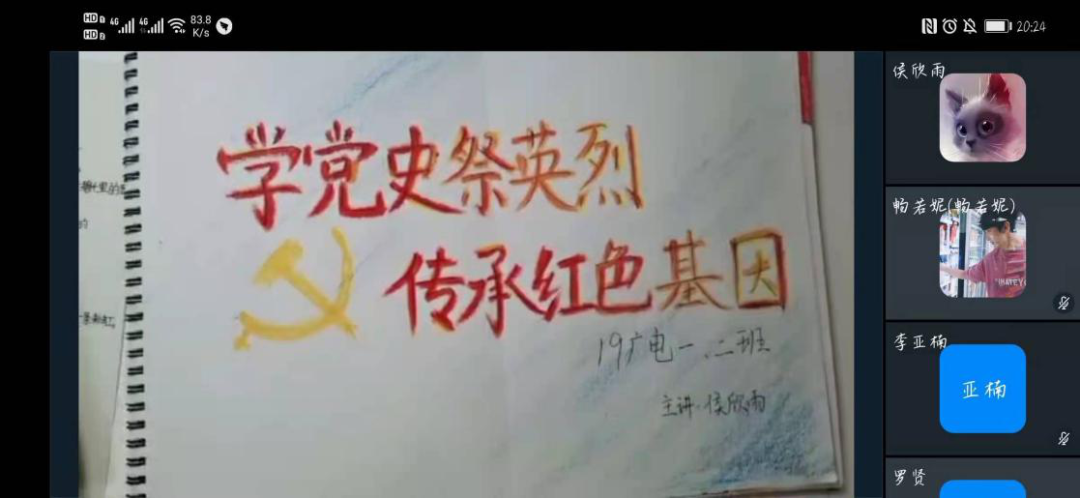 今年是中国共产党成立100周年,当前正深入开展党史学习教育,为缅怀革命先烈,传承红色基因,激发学生对革命先烈们的深深崇敬和怀念之情,树立正确的世界观、人生观、价值观,4月4号晚,19广电一班和二班联合开展“清明祭英烈”主题班会,以线上直播课堂的形式,结合党史学习教育、革命传统教育、爱国主义教育和感恩教育激发学生爱国情怀。