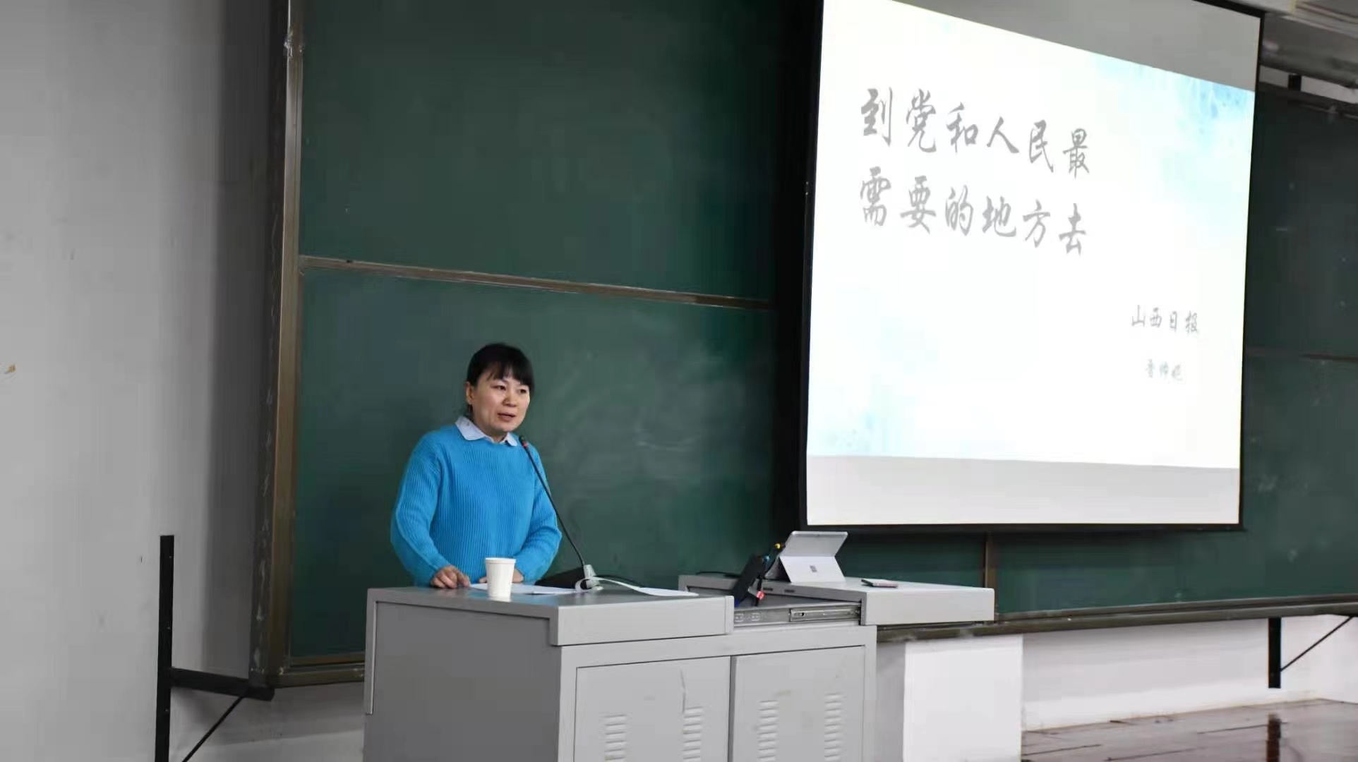 山西日报社工交部的记者晋帅妮与师生一起分享了疫情期间她主动请缨奔赴武汉抗疫一线,与山西支援湖北医疗队队员在武汉并肩战“疫”53天的点点滴滴。