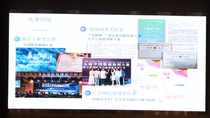 18网新二班岳少卿,从国家奖学金的评选条件入题,重点为大家分享了以赛促学的经验。大学期间不仅要努力提升学习成绩,更应该注重自身全面发展。通过参加新闻传播行业内有影响力的专业比赛,拓展专业视野、提升实践能力。比如,数据新闻类、纪录片视频类、创新创业类比赛以及广告创意策划类比赛。“人的发展不是一朝一夕的,衡量一个人的标准很多”,希望大家丰富自己、充实自己,全面发展。