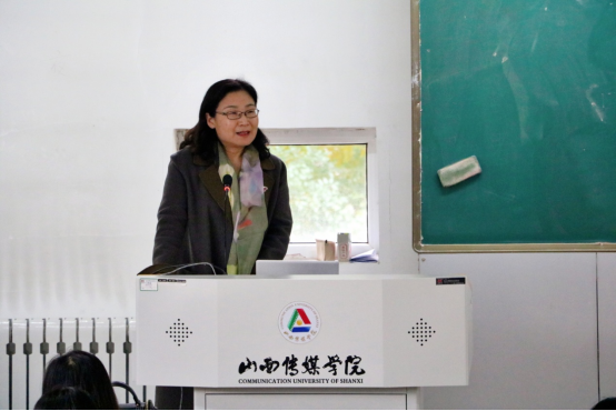 贾丽云老师则以大学生最为普遍的三个状态入手,深入浅出地为同学们提供了如何面对和规划新生活的指导性意见。她表明,大学时期首先是适应和转变阶段,在这个过程中,同学们要不断提高自主性和创新性;其次是集中学习时期,她希望同学们在这个阶段要不断提高自己的专业本领,增长本事,学会选择真正有意义的东西,学会取舍,掌握理论和专业技能,成为专业的“新闻人”;最后是“集大成”阶段,同时也是收获阶段,面临多种多样的选择,希望大家可以选择适合自己的路。