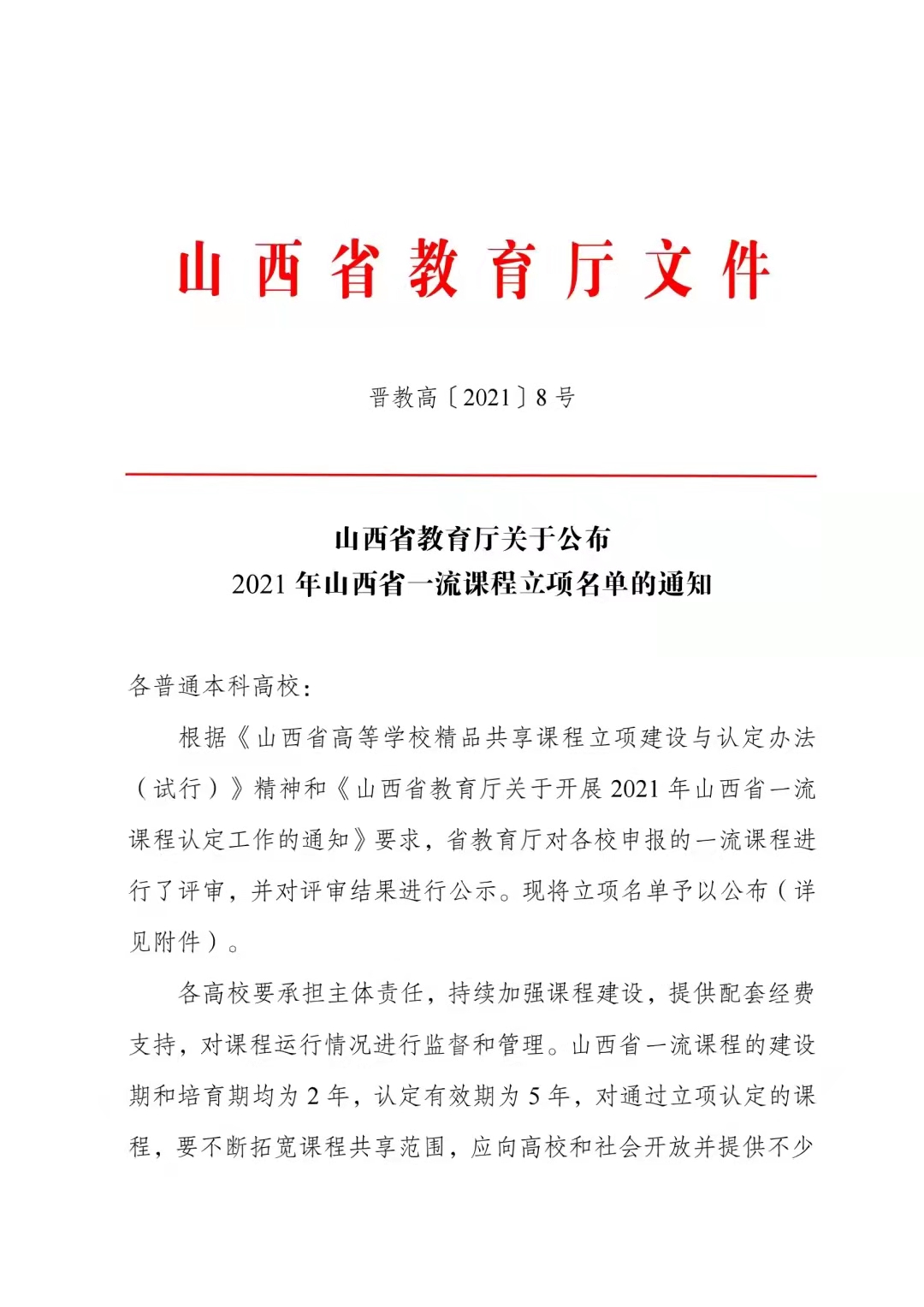 近日,省教育厅公布2021年山西省一流课程立项名单(晋教高〔2021〕8号),本次山西省共认定220门省级一流课程,我院《新闻摄像》课程成功入选,为线下一流课程。