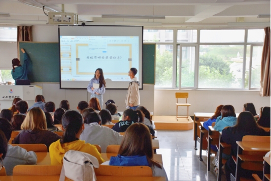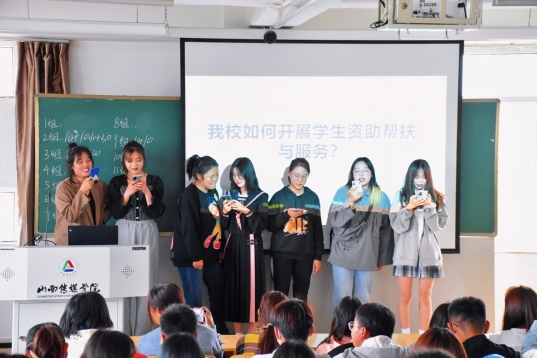 联合班会采用游戏答题穿插才艺展示的形式,其中答题环节分为抢答模式、循环答题模式、抢分答题模式、押分模式等不同形式,学生提前组成答题小组,最后决出分数最高的小组为优胜组予以奖励,并对得分最低组进行小惩戒。题目考察内容包括我校现有基础设施情况、我校的国家和省级一流专业建设点、我校的发展战略、办学理念及校训等应知应会的评估知识。