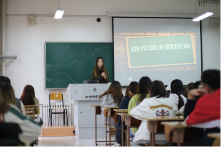2021年11月5日,2020级网络与新媒体专业一班和二班全体同学在文博楼召开了主题为“擦亮双眼、谨防诈骗”的安全教育暨防诈骗班会。