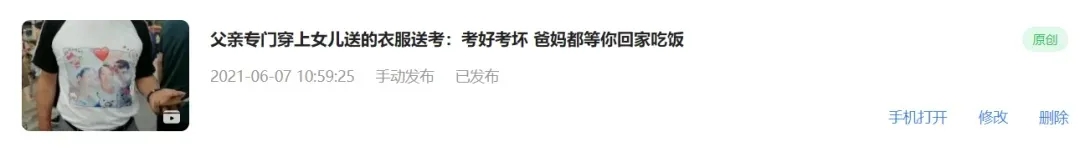 父亲专门穿上女儿送的衣服送考:考好考坏 爸妈都等你回家吃饭