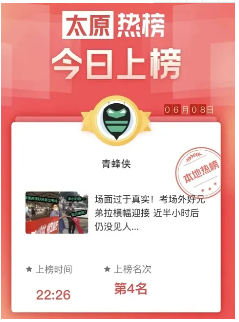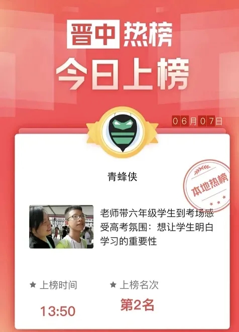 此外同学们在现场挖掘高考故事,制作相关短视频报道在当日头条热榜随处可见,并引发大量网友讨论,部分报道被腾讯插件推送。