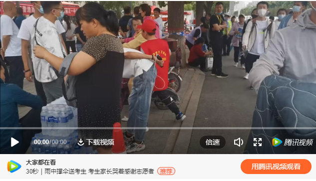 11岁小朋友自费为高考考生分发矿泉水:很高兴能当高考志愿者