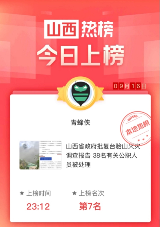 短视频山西省政府批复台骀山火灾调查报告 38名有关公职人员被处理