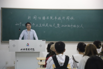 会上,卓越班的负责老师李晨阳对新一届卓越班同学送上了祝福并对他们寄予厚望。希望2020级卓越班新生向师哥师姐学习,沉下心来挖掘新闻背后的故事,不仅有技术上的提升,更要有思想上的升华,做有温度的新闻,做有温度的新闻人。