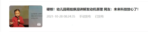 硬核!幼儿园萌娃飙泪讲解发动机原理 网友:未来科技放心了!
