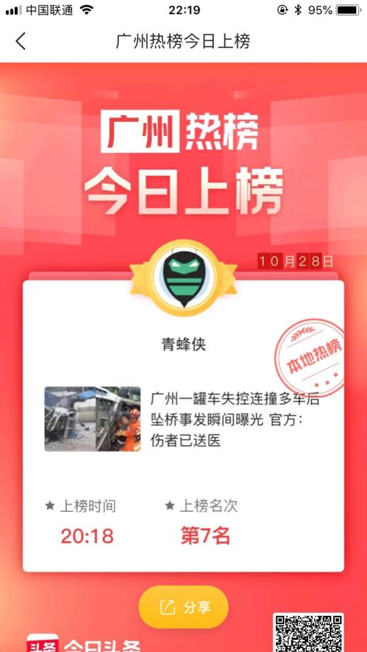 广州一罐车失控连撞多车后坠桥事发瞬间曝光 官方:伤者已送医