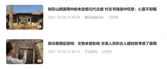 此外两则暴雨中的山西古建有关报道也先后上线为暴雨系列报道收尾: