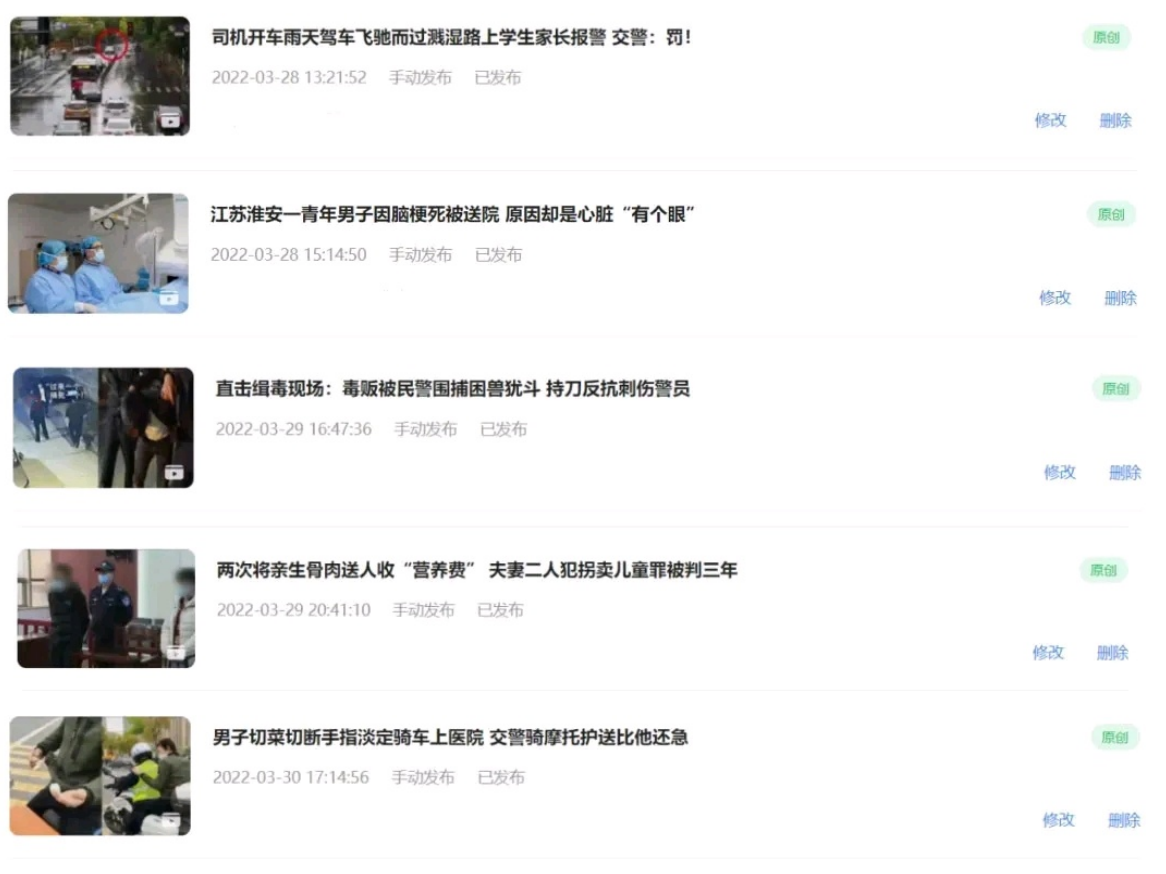 3月28日-4月3日,本学期移动视频传播实训教学第21周,本周实训同学围绕社会日常,普法,社会正能量等方面制作视频15条发布12条,部分作品:
