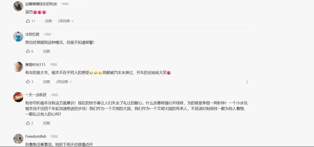 司机开车雨天驾车飞驰而过溅湿路上学生家长报警 交警:罚!